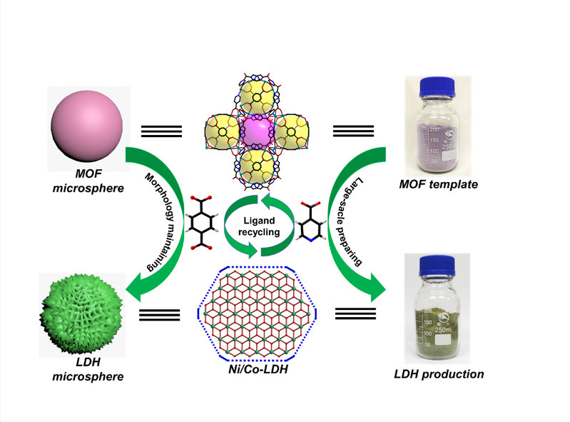 近年来,金属-有机框架(MOFs)作为一种新型的多孔材料,因其超高的比表面积、丰富的孔结构以及高分散的金属中心等特点,被认为是一种理想的制备纳米氧化物材料、多孔碳材料以及复合材料的前驱体。目前,MOFs衍生材料的制备方法多局限于传统的热解策略,由于反应在高温条件下进行,过程复杂,可控性差,且对气体环境异常敏感,极易造成骨架坍塌、金属中心团聚和孔结构堵塞等现象;同时热解过程必然导致MOFs中昂贵有机配体的分解,以及有毒有害气体的排放,增加了合成过程的经济和环境成本,限制了其大规模工业化应用的可能。