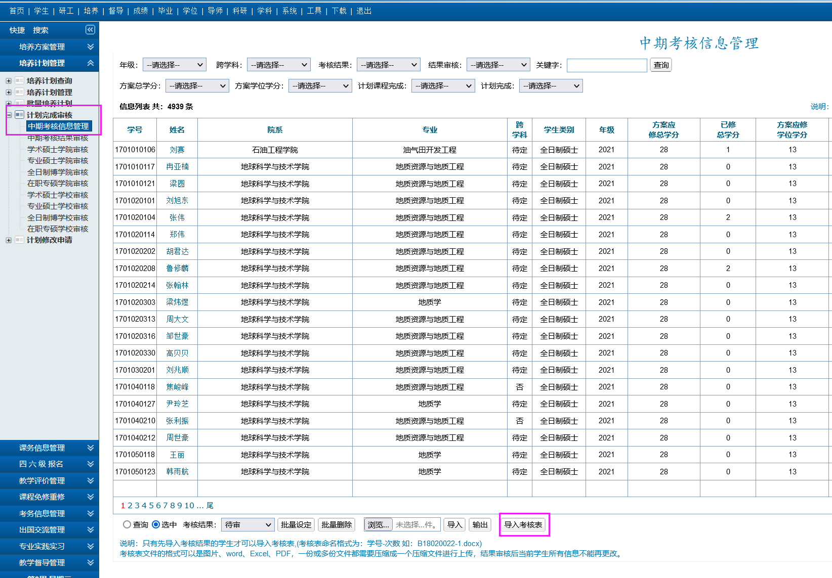 4.中期考核表批量导入说明: