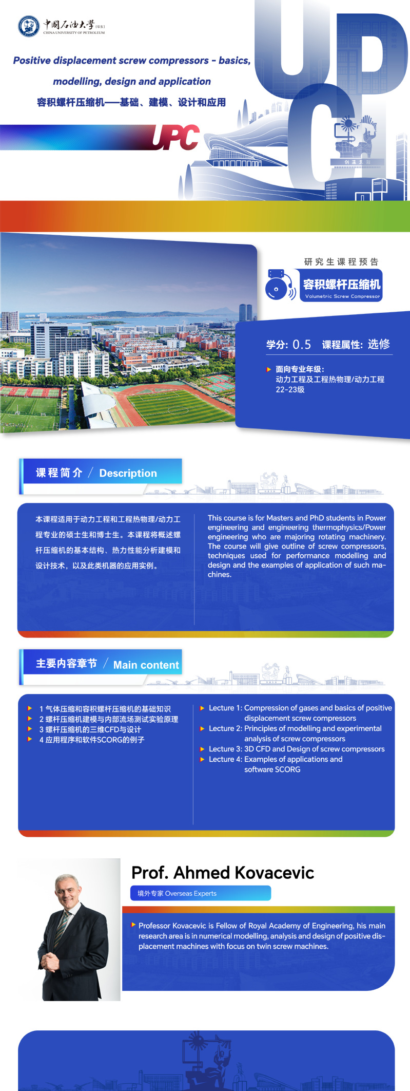 研究生国际教育课程之《容积螺杆压缩机—基础、建模、设计和应用》(新能源学院)