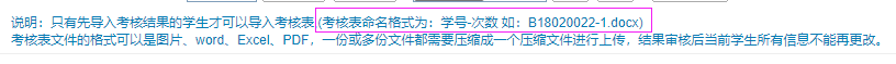 1)按照学号-次数的格式命名考核表,将所传文件压缩成一个压缩文件。